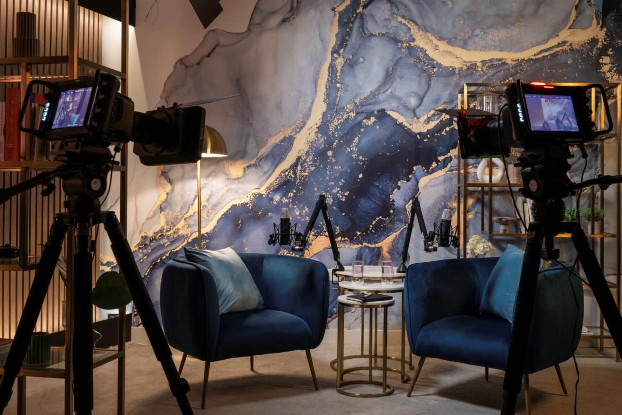 Choose from versatile, professionally designed recording sets to match your brand and content style. PodNest gives you genuine visual variety.